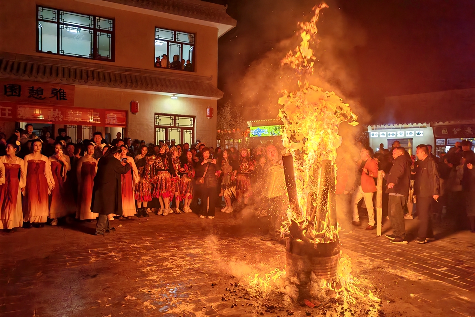 文艺表演结束,篝火晚会正式开始。星光、夜色、烟花、篝火,浪漫的夜晚、熊熊的火苗、激情燃烧的时刻……远道而来的游客相聚在一起,共享篝火盛宴。熊熊的篝火在夜空燃烧,伴随着动感的音乐,大家手拉手、肩并肩一起围着篝火跳起欢乐的锅庄舞,现场的氛围被推至高潮。