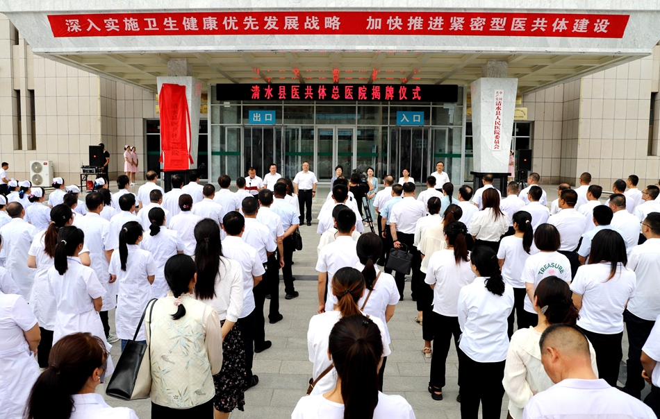 8月20日,清水县举行紧密型医共体总医院揭牌仪式。副市长汪小娟,县委书记李菊霞为清水县紧密型医共体总医院揭牌。