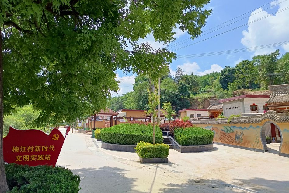 走进贾川乡梅江村,干净整洁的乡间道路旁清新美观的农家院落错落有致,院墙上农耕图景栩栩如生,小花园内修竹拔节、月季盛放。古槐参天,清风徐来、树影横斜,村民们围坐其间乘凉话闲,一幅和美乡村的图景映入眼帘。
