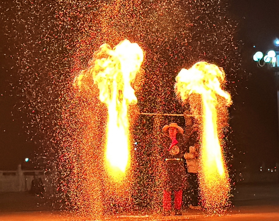 漫天缤纷的“铁花雨”,是传承千年的中式浪漫。现代打铁花表演在对古老技艺传承的基础上进行创新,不仅精心设计的灯光和音响效果,还增强了现场的沉浸感和体验感,将打铁花的视觉效果发挥到极致。变幻莫测、惊艳绝伦的铁花美景,给清水的夜晚增加了璀璨的色彩。