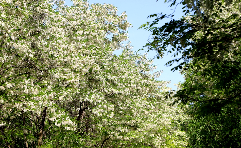 五月的清水,槐花盛开,槐香满城。清水县邽山的槐花竞相绽放、漫山遍野的洋槐花灿然盛开,十分壮观。微风拂来,空气里到处弥漫着槐花香味,一簇簇洁白的槐花点缀在青枝翠叶之间,仿佛一串串白色的风铃在风中摇曳,散发出的清香让人如痴如醉。