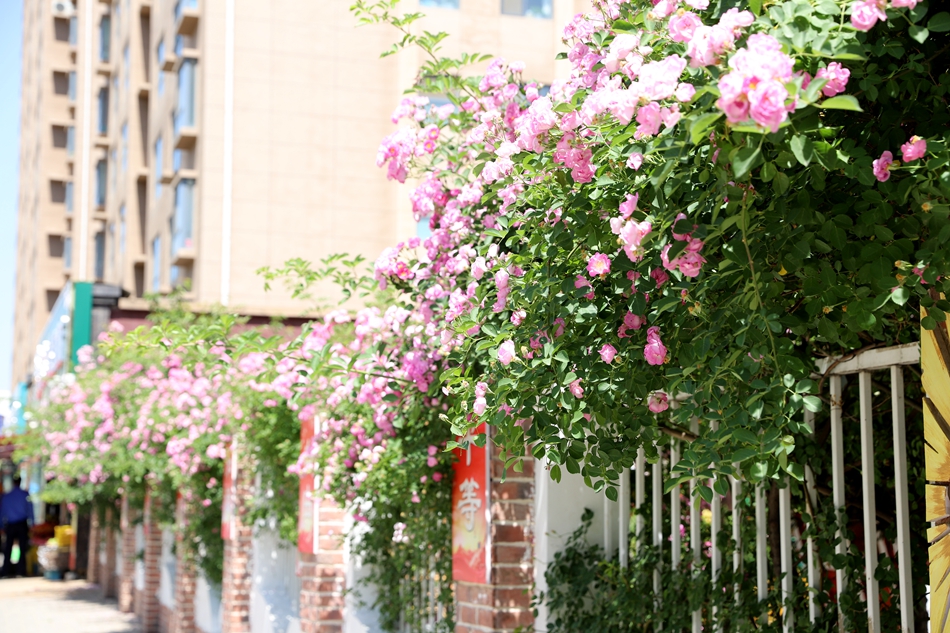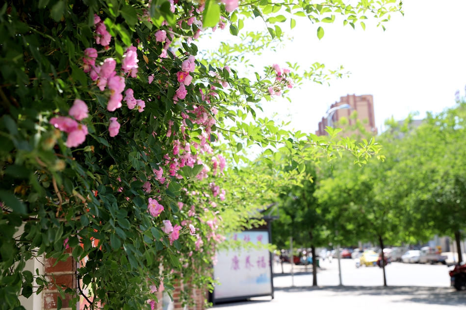 五月的清水,阳光正好,微风不燥,万木葱茏,花团锦簇。城区居民楼、单位外围墙栽植的蔷薇、月季次第绽放,层层叠叠,缠绕在枝头,如同一道道花墙,分外美丽。与道路两旁的树木相辅相成,放眼望去满目葱翠,繁花点缀其中,一幅“人在景中、景在城中”的美好画卷正徐徐展开。
