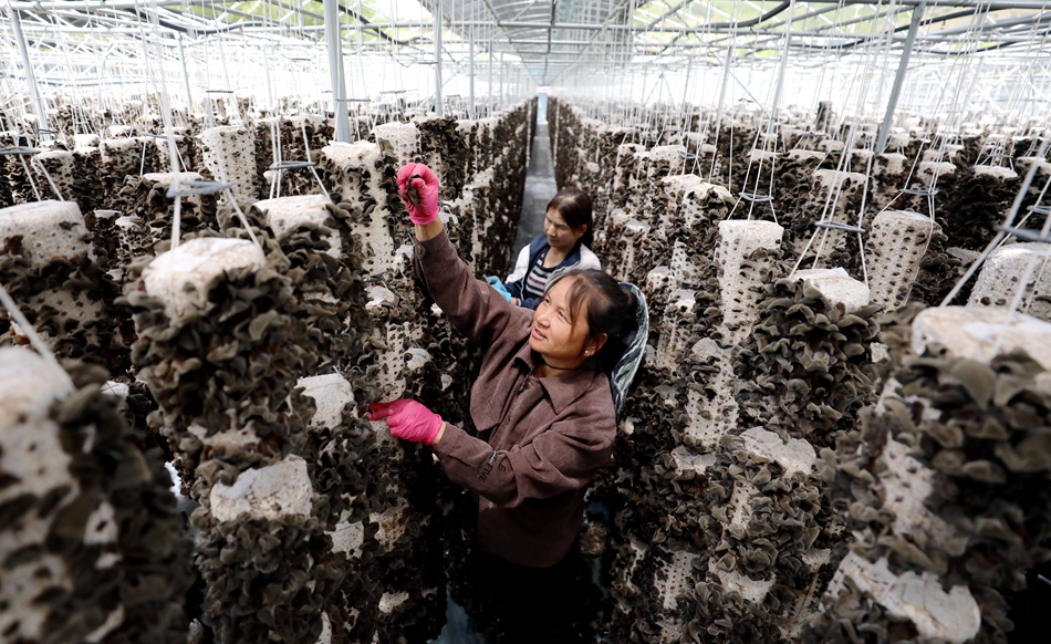 夏日晴朗,正是木耳的采摘旺季,经过数月精心照料,清水县白驼镇黑木耳喜获丰收。在白驼镇食用菌产业园内,一片火热的劳动景象,一排排棒包整齐挂袋,油亮润泽的黑木耳破袋而出,长势喜人,农户们迎来最忙碌的采摘季节。(清水融媒记者图/文 张平安 王卫东)