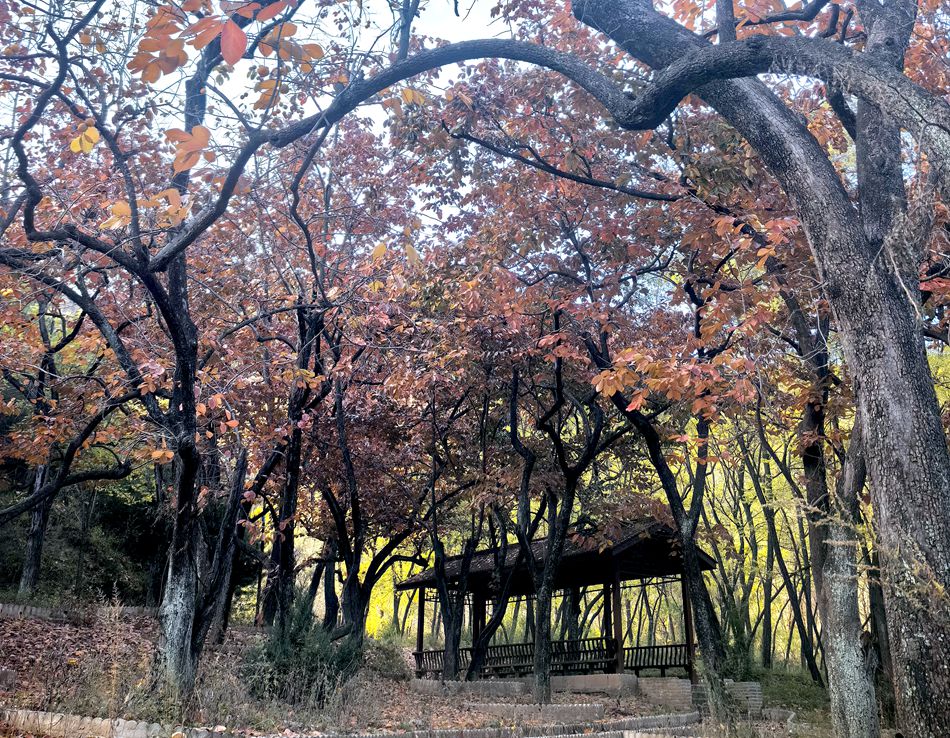 小泉峡凌霜园占地面积4亩,依托柿子树和庞公石等,在园内建造凉亭、步行道、停车位、假山,栽植各类花卉,景色宜人,是清水一热门打卡地。