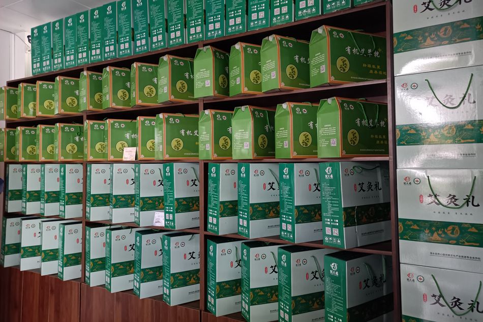 走进清水县养心园农耕文化产业旅游专业合作社,储藏仓库里艾草高垛,捆捆堆积如小山;细密柔软的艾绒经过机器加工变身为有序排列的根根艾条;展销大厅里艾草产品琳琅满目,从传统的艾条、艾柱到按摩精油、艾绒家纺等应有尽有。