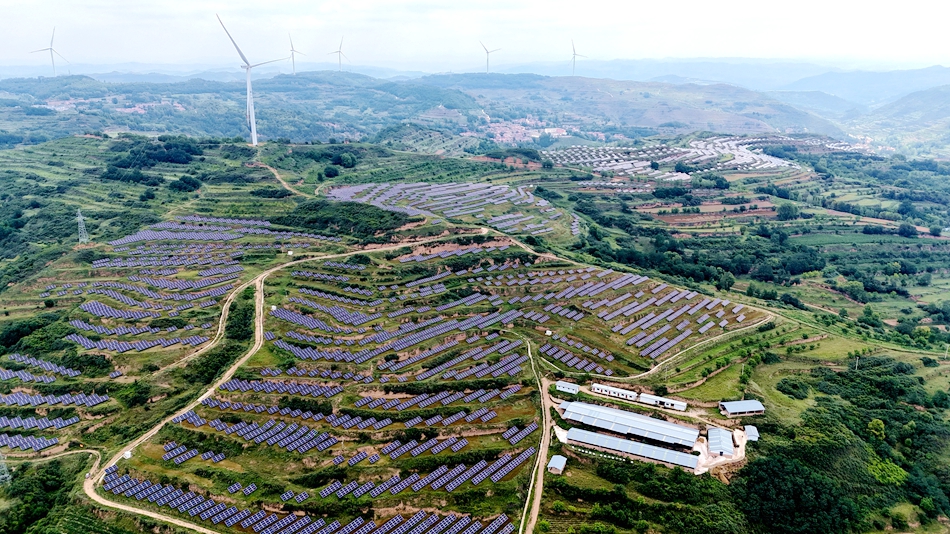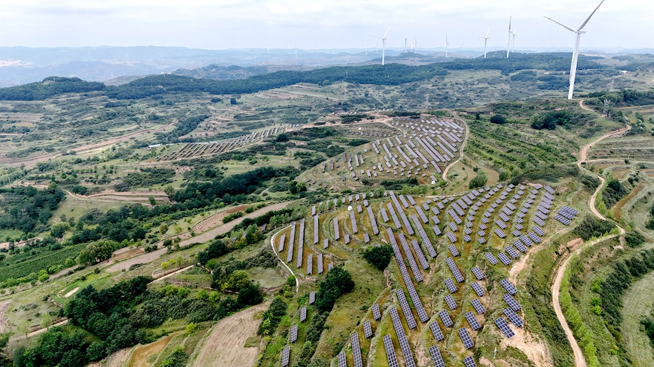 来到清水县50兆瓦村级光伏电站,山梁上密密麻麻的光伏发电板整齐排列,在太阳的照射下熠熠生辉。不远处的山顶上,巨大的风力发电机迎风转动,将风能源源不断转化为清洁电能,为千家万户送去光明和温暖。