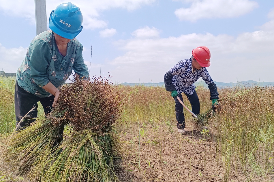 以光促农、农光协同。清水县将光伏发电与农业产业相结合,实现了双重资源的复合高效利用,新能源和农业双创收鼓起了农民的“钱袋子”。据了解,胡麻产生的收益会平均分配至121个脱贫村,农忙时仅吸纳劳动力务工就达到200余人,人均年增收6000元。